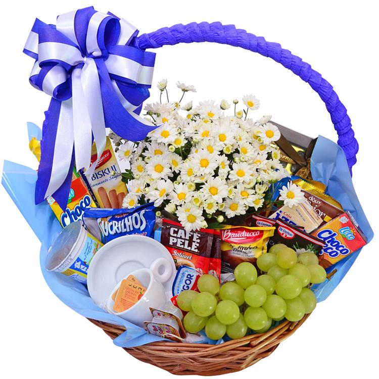 *A cesta será embrulhada em papel celofane transparente e arrematada com um laço.